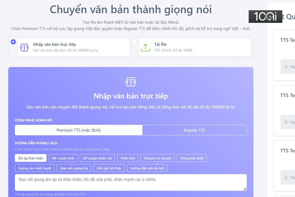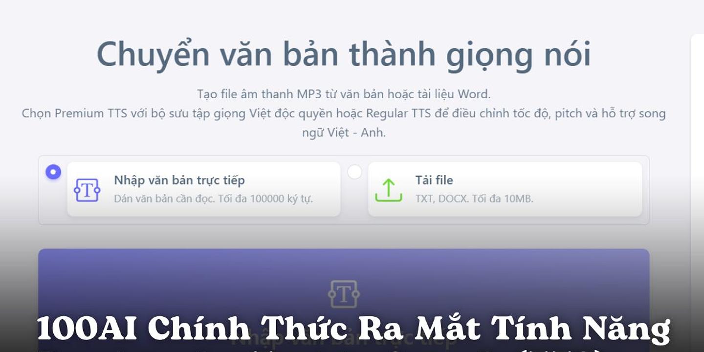 Đây là một bước cải tiến quan trọng trong hành trình hoàn thiện hệ sinh thái AI chuyển đổi văn bản thành giọng nói tại 100AI, hướng tới trải nghiệm người dùng thân thiện, linh hoạt và chuyên nghiệp hơn.
