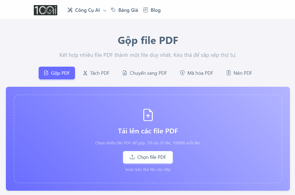 1. Truy cập https://ai.100ai.vn/gop-pdf