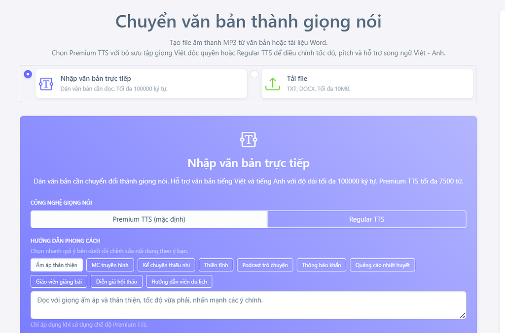 Nếu bạn đang muốn sản xuất video review phim, podcast hoặc nội dung kể chuyện một cách nhanh chóng và chuyên nghiệp, hãy thử ngay công cụ AI giọng nói của 100AI. Với 100AI, bạn có thể dễ dàng chuyển kịch bản thành giọng đọc tự nhiên, rõ ràng và giàu cảm xúc mà không cần phòng thu hay thiết bị phức tạp. Công cụ hỗ trợ nhiều phong cách giọng đọc khác nhau, giúp bạn linh hoạt lựa chọn theo tone nội dung, từ nhẹ nhàng, truyền cảm đến năng động, kịch tính. Không chỉ tiết kiệm thời gian, AI giọng nói của 100AI còn giúp bạn duy trì chất lượng ổn định cho mọi video, từ đó xây dựng thương hiệu nội dung chuyên nghiệp và nhất quán.