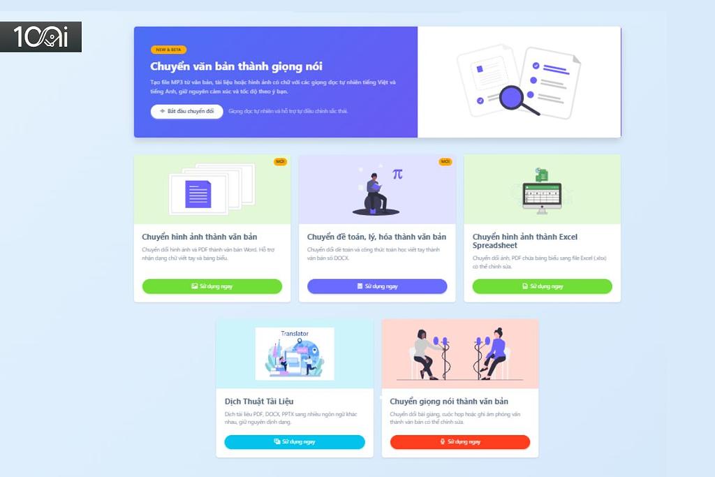 Cơ chế này mang lại nhiều lợi ích thực tế cho người dùng. Bạn có thể trải nghiệm AI liên tục mà không bị gián đoạn, dễ dàng thử nghiệm các tính năng mới và sử dụng 100AI như một công cụ hỗ trợ công việc hằng ngày. Đặc biệt, với sinh viên, giáo viên, nhân viên văn phòng hay content creator, việc có credit miễn phí mỗi ngày giúp giảm đáng kể chi phí trong quá trình số hóa tài liệu, làm nội dung hay tạo giọng đọc.