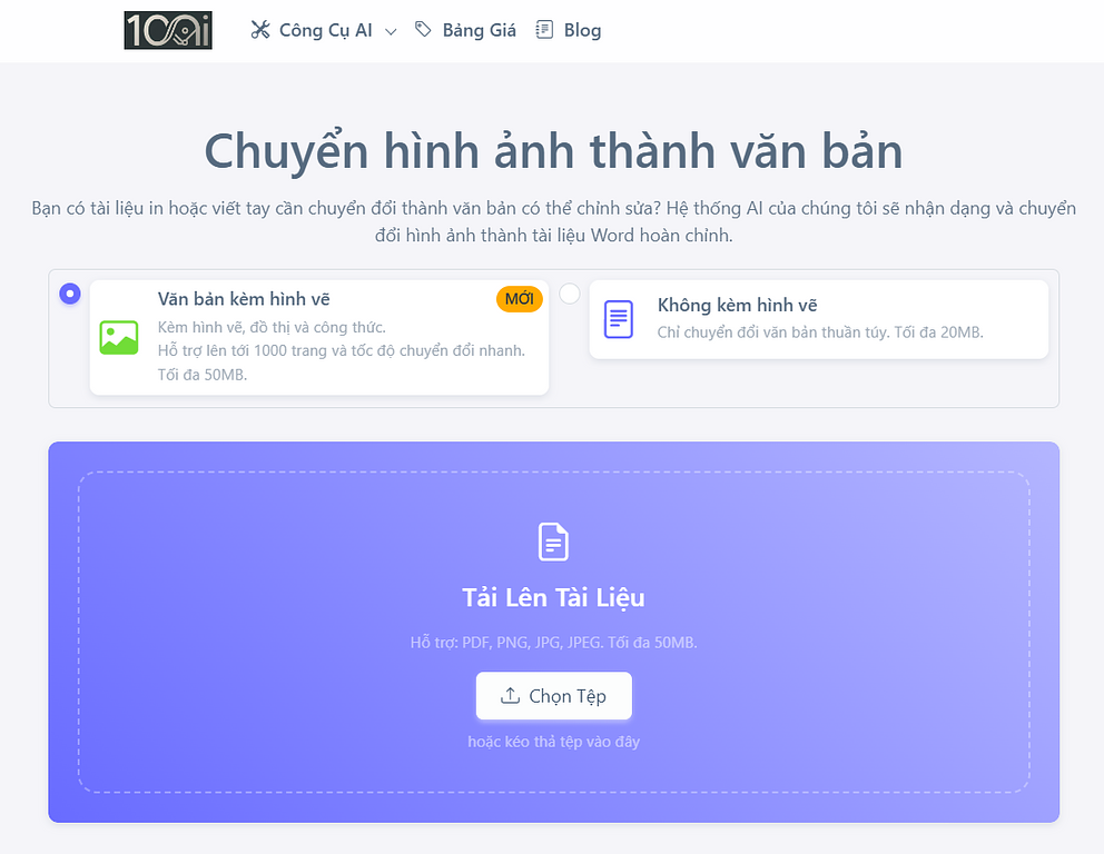 - Công cụ gợi ý: Các phần mềm "Make in Vietnam" như FPT.AI Reader hay VietOCR, 100AI cực kỳ mạnh mẽ trong việc xử lý tiếng Việt có dấu và các cấu trúc văn bản hành chính đặc thù. Đối với các tài liệu chứa công thức kỹ thuật hoặc toán học, 100AI hay AuraLaTeX là giải pháp tối ưu giúp chuyển đổi hình ảnh thành đối tượng Word có thể chỉnh sửa chỉ trong vài giây.