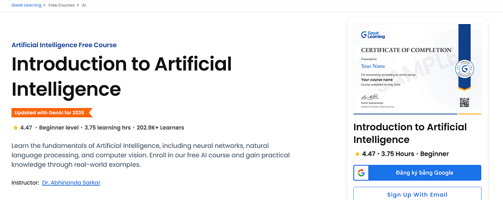 Chi tiết khoá học: https://www.mygreatlearning.com/academy/learn-for-free/courses/introduction-to-artificial-intelligence