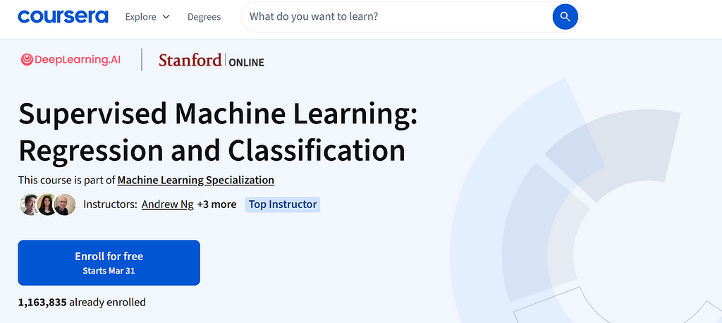 Nếu bạn muốn đi xa hơn và thực sự xây dựng mô hình AI, đây là khóa học “kinh điển”. Được giảng dạy bởi Andrew Ng (một trong những người đặt nền móng cho Google Brain, một trong những nhóm sáng tạo và có ảnh hưởng nhất trong việc phát triển AI thập kỷ qua) khóa học giúp bạn hiểu sâu về các thuật toán như regression, neural networks và classification.